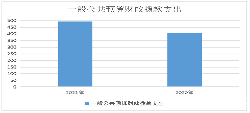 四、财政拨款收入支出决算总体情况说明 财政拨款收入(一般公共预算)438万元,比上年408.72万元增加0.7%,财政拨款收入(政府性基金预算)金额为0万元,结转资金57.07万元。财政拨款总支出495.07万元(含上年结转资金57.07万元),其中基本支出266.05万元,比上年213.89万元增加24.39%;项目支出229.02万元,比上年137.76万元增加66.25%,主要原因是上年项目结转资金在本年支出。具体构成(含上年结转资金):工资福利支出213.1万元,比上年156.4万元增加;商品和服务支出279.49万元比上年183.77万元增加;对个人和家庭的补助0.48万元,与上年0.48万元持平;资本性支出2万元,比上年11万元降低。本年的特点是人员经费增加,而业务活动经费增加。 五、一般公共预算财政拨款支出决算情况说明 (一)一般公共预算财政拨款支出决算总体情况。 2021年一般公共预算财政拨款支出495.07万元,比上年408.72万元增加86.35万元,增加21.13%。本年的特点是人员经费及公用经费增加,业务活动经费增加。