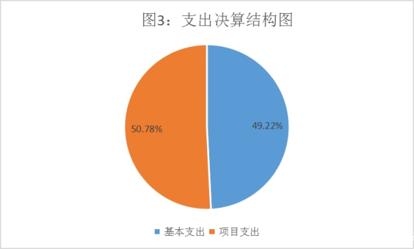 三、 支出决算情况说明 2020年本年支出合计2074.02万元,其中:基本支出1020.91万元,占49.22%;项目支出1053.11万元,占50.78%。
