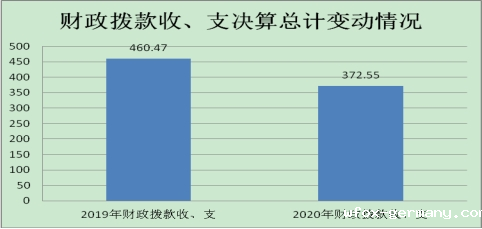 四、财政拨款收入支出决算总体情况说明 2020年财政拨款收、支总计372.55万元。与2019年相比,财政拨款收、支总计各减少87.92万元,下降19.09%。主要变动原因是厉行节约 项目支出减少。 (图4:财政拨款收、支决算总计变动情况)