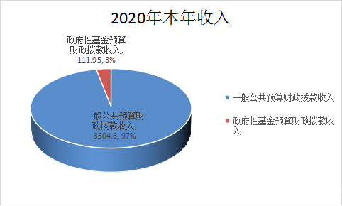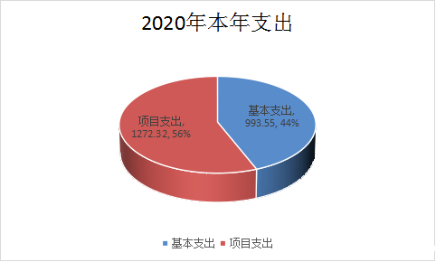 (图1:收、支决算总计变动情况图)(柱状图) 2020年本年收入合计3616.75万元,其中:一般公共预算财政拨款收入3504.8万元,占97%;政府性基金预算财政拨款收入111.95万元,占3%。 (图2:收入决算结构图)(饼状图) 2020年本年支出合计2265.87万元,其中:基本支出993.55万元,占44%;项目支出1272.32万元,占56%。
