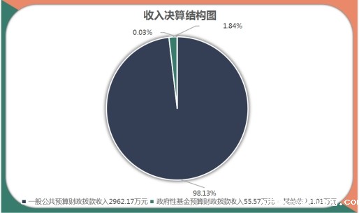 二、 收入决算情况说明 2021年本年收入合计3018.75万元,其中:一般公共预算财政拨款收入2962.17万元,占98.13%;政府性基金预算财政拨款收入55.57万元,占1.84%;国有资本经营预算财政拨款收入0万元,占0%;上级补助收入0万元,占0%;事业收入0万元,占0%;经营收入0万元,占0%;附属单位上缴收入0万元,占0%;其他收入1.01万元,占0.03%。