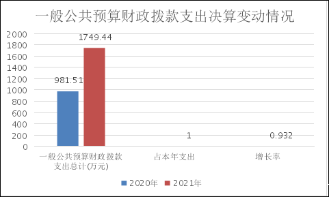 2021年本年收入合计1427.28万元,其中:一般公共预算财政拨款收入1427.28万元,占100%。 (注:数据来源于财决01表,仅罗列本单位涉及的收入。) (图2:收入决算结构图)(饼状图) 2021年本年支出合计1749.44万元,其中:基本支出396.4万元,占22.66%;项目支出1353.04万元,占77.34%。(注:数据来源于财决04表,仅罗列本单位涉及的支出。) (图3:支出决算结构图)(饼状图) 2021年财政拨款收入总计1427.28万元,支出总计1749.44万元。与2020年相比,财政拨款收入总计增加338.94万元,增长31.11%;支出总计增加767.93万元,增长78.24%。主要变动原因是因特种设备数量增加和劳务派遣人员增加导致检验检测各项成本增加。(注:数据来源于财决01-1表) (图4:财政拨款收、支决算总计变动情况)(柱状图) 2021年一般公共预算财政拨款支出1749.44万元,占本年支出合计的100%。与2020年相比,一般公共预算财政拨款支出增加843.97万元,增长93.2%。主要变动原因是因特种设备数量增加和劳务派遣人员增加导致检验检测各项成本增加。 (图5:一般公共预算财政拨款支出决算变动情况)(柱状图) 2021年一般公共预算财政拨款支出1749.44万元,主要用于以下方面:一般公共服务(类)支出1674.31万元,占95.7%;社会保障和就业(类)支出38.94万元,占2.2%;卫生健康支出(类)17.14万元,占1%;住房保障支出(类)19.05万元,占1.1%。 (注:数据来源于财决01-1表,仅罗列本单位涉及的全部功能分类科目,至类级。) (图6:一般公共预算财政拨款支出决算结构)(饼状图) 2021年一般公共预算支出决算数为1749.44,完成预算98.6%。其中: 1.一般公共服务(类)市场监督管理事务(款) 信息性化建设(项):支出决算为20.88万元,完成预算100%,决算数等于预算数。 事业运行(项):支出决算为321.27万元,完成预算100%,决算数等于预算数。 其他市场监督管理事务(项):支出决算为1332.16万元,完成预算98.5%,决算数小于预算数的主要原因是项目延期和项目未支付款项结转至下年。 2.社会保障和就业(类)行政事业单位养老支出(款) 事业单位离退休(项):支出决算为0.84万元,完成预算100%,决算数等于预算数。 机关事业单位基本养老保险缴费支出(项):支出决算为25.4万元,完成预算100%,决算数等于预算数。 机关事业单位职业年金缴费支出(项):支出决算为12.7万元,完成预算100%,决算数等于预算数。 3.卫生健康(类)行政事业单位医疗(款)事业单位医疗(项):支出决算为17.14万元,完成预算100%,决算数等于预算数。 4.住房保障支出(类)住房改革支出(款)住房公积金(项):支出决算为19.05万元,完成预算100%,决算数等于预算数。 (注:数据来源于财决01-1表和财决08表,仅罗列本单位涉及的全部功能分类科目,至项级。上述“预算”口径为调整预算数。增减变动原因为决算数<项级>和调整预算数<项级>比较,与预算数持平可以不写原因。) 2021年一般公共预算财政拨款基本支出396.4万元,其中: 人员经费371.67万元,主要包括:基本工资、津贴补贴、奖金、伙食补助费、绩效工资、机关事业单位基本养老保险缴费、职业年金缴费、其他社会保障缴费、其他工资福利支出、离休费、退休费、抚恤金、生活补助、医疗费补助、奖励金、住房公积金、其他对个人和家庭的补助支出等。 公用经费24.73万元,主要包括:办公费、印刷费、咨询费、手续费、水费、电费、邮电费、取暖费、物业管理费、差旅费、因公出国(境)费用、维修(护)费、租赁费、会议费、培训费、公务接待费、劳务费、委托业务费、工会经费、福利费、公务用车运行维护费、其他交通费、税金及附加费用、其他商品和服务支出、办公设备购置、专用设备购置、信息网络及软件购置更新、其他资本性支出等。 (注:数据来源于财决07表和财决08-1表,仅罗列本单位实际支出涉及的经济分类科目。) 2021年“三公”经费财政拨款支出决算为18.05万元,完成预算84%,决算数小于预算数的主要原因是厉行节约。 (注:上述“预算”口径为调整预算数,包括一般公共预算和政府性基金预算财政拨款支出决算情况。) 2021年“三公”经费财政拨款支出决算中,因公出国(境)费支出决算0万元,占0%;公务用车购置及运行维护费支出决算17.51万元,占97%;公务接待费支出决算0.54万元,占3%。具体情况如下: (图7:“三公”经费财政拨款支出结构)(饼状图) 1.因公出国(境)经费支出0万元。全年安排因公出国(境)团组0次,出国(境)0人。因公出国(境)支出决算与2020。主要原因是两年均没有因公出国(境)业务发生。 2.公务用车购置及运行维护费支出17.51万元,完成预算83.4%。公务用车购置及运行维护费支出决算比2020年减少65.83万元,下降79%。主要原因是2021年未新购公务用车。 其中:公务用车购置支出0万元。全年按规定更新购置公务用车0辆,金额0万元。截至2021年12月底,单位共有公务用车7辆,其中:轿车5辆、越野车2辆。 公务用车运行维护费支出17.51万元。主要用于开展特种设备检验检测等所需的公务用车燃料费、维修费、过路过桥费、保险费等支出。 3.公务接待费支出0.54万元,完成预算108%。公务接待费支出决算比2020年增加0.19万元,增长54%。主要原因是划为公益二类后与其他单位业务沟通交流增加。其中: 国内公务接待支出0.54万元,主要用于开展与特种设备检验检测业务有关的公务接待开支的交通费、住宿费、用餐费等。国内公务接待6批次,55人次(不包括陪同人员),共计支出0.54万元,具体内容包括:接待乐山