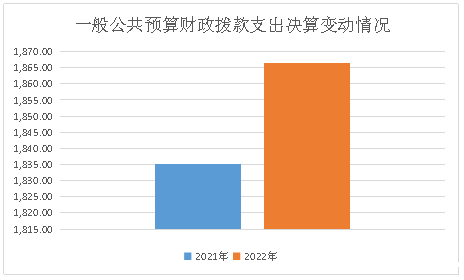 (图3:支出决算结构图)(饼状图) 四、财政拨款收入支出决算总体情况说明 2022年财政拨款收、支总计1,866.37万元。与2021年相比,财政拨款收、支总计各增加31.15万元,增长1.7%。主要变动原因是人员增加、项目增加。 (图4:财政拨款收、支决算总计变动情况)(柱状图)