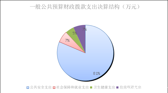 (图5:一般公共预算财政拨款支出决算变动情况) 2022年一般公共预算财政拨款支出758.77万元,主要用于以下方面:公共安全支出617.89万元,占81.43%;社会保障和就业支出50.71万元,占6.68%;卫生健康支出38.03万元,占5.01%;住房保障支出52.14万元,占6.88%。
