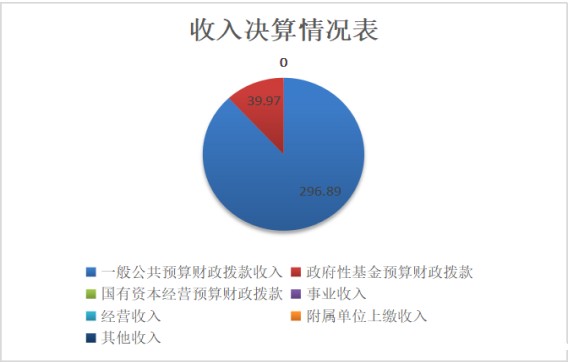 2022年本年收入合计352.69万元,其中:一般公共预算财政拨款收入296.89万元,占84.2%;政府性基金预算财政拨款收入39.97万元,占11.3%;国有资本经营预算财政拨款收入0万元,占0%;上级补助收入0万元,占0%;事业收入0万元,占0%;经营收入0万元,占0%;附属单位上缴收入0万元,占0%;其他收入15.83万元,占4.5%。