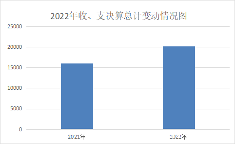 2022年度收、支总计20215.83万元。与2021年相比,收、支总计各增加4203.36万元,增长26.25%。主要变动原因有两个:一是学校发展规模扩大,招生人数增加,生均拨款增加;二是2022年我校将食堂账户资金纳入了预决算管理中。 (图1:收、支决算总计变动情况图)(柱状图)