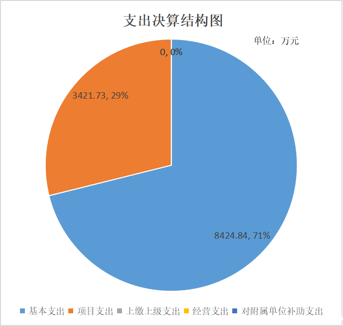 2022年本年支出合计11,846.57万元,其中:基本支出8,424.84万元,占71.1%;项目支出3,421.73万元,占28.9%。