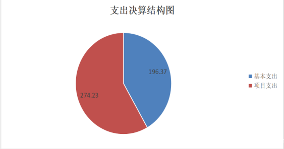 三、支出决算情况说明 2022年本年支出合计470.60万元,其中:基本支出196.37万元,占41.7%;项目支出274.23万元,占58.3%;上缴上级支出0万元,占0%;经营支出0万元,占0%;对附属单位补助支出0万元,占0%。