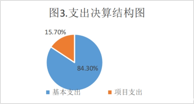 三、支出决算情况说明 2022年本年支出合计5,296.81万元,其中:基本支出4,463.67万元,占84.3%;项目支出833.14万元,占15.7%。
