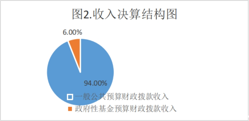 二、收入决算情况说明 2022年本年收入合计5,296.81万元,其中:一般公共预算财政拨款收入4,978.12万元,占94%;政府性基金预算财政拨款收入318.69万元,占6%。