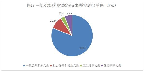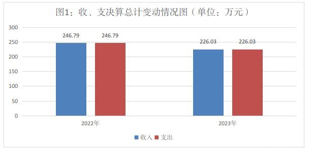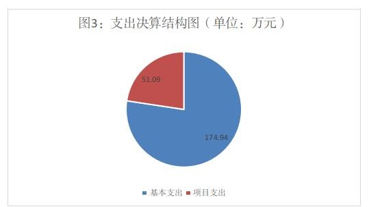 二、 收入决算情况说明 2023年度本年收入合计226.03万元,其中:一般公共预算财政拨款收入226.03万元,占100%。 三、 支出决算情况说明 2023年度本年支出合计226.03万元,其中:基本支出174.94万元,占77.40%;项目支出51.09万元,占22.60%。 四、财政拨款收入支出决算总体情况说明 2023年度财政拨款收、支总计均为226.03万元。与2022年度相比,财政拨款收、支总计各减少20.76万元,下降8.41%。主要变动原因一是2023年4月调出1人,工资福利支出减少;二是2022年雷竞技raybet官网入口最目标绩效管理系统验收合格,支付软件开发服务费13.64万元,2023年未发生该笔支出,项目支出减少。 五、一般公共预算财政拨款支出决算情况说明 (一)一般公共预算财政拨款支出决算总体情况 2023年度一般公共预算财政拨款支出226.03万元,占本年支出合计的100%。与2022年度相比,一般公共预算财政拨款支出减少20.76万元,下降8.41%。主要变动原因一是2023年4月调出1人,工资福利支出减少;二是2022年雷竞技raybet官网入口最目标绩效管理系统验收合格,支付软件开发服务费13.64万元,2023年未发生该笔支出,项目支出减少。 (二)一般公共预算财政拨款支出决算结构情况 2023年度一般公共预算财政拨款支出226.03万元,主要用于以下方面:一般公共服务支出183.3万元,占81.10%;社会保障和就业支出21.84万元,占9.66%;卫生健康支出7.5万元,占3.32%;住房保障支出13.39万元,占5.92%。 (三)一般公共预算财政拨款支出决算具体情况 2023年度一般公共预算支出决算数为226.03,完成预算100%。其中: 1.一般公共服务(类)党委办公厅(室)及相关机构事务(款)行政运行(项):支出决算为132.21万元,完成预算100%,决算数等于预算数。 2.一般公共服务(类)党委办公厅(室)及相关机构事务(款)一般行政管理事务(项):支出决算为51.09万元,完成预算100%,决算数等于预算数。 3.社会保障和就业(类)行政事业单位养老支出(款)机关事业单位基本养老保险缴费支出(项): 支出决算为14.46万元,完成预算100%,决算数等于预算数。 4.社会保障和就业(类)行政事业单位养老支出(款)机关事业单位职业年金缴费支出(项):支出决算为7.23万元,完成预算100%,决算数等于预算数。 5.社会保障和就业(类)其他社会保障和就业支出(款)其他社会保障和就业支出(项): 支出决算为0.15万元,完成预算100%,决算数等于预算数。 6.卫生健康(类)行政事业单位医疗(款)行政单位医疗(项):支出决算为7.5万元,完成预算100%,决算数等于预算数。 7.住房保障支出(类)住房改革支出(款)住房公积金(项):支出决算为13.39万元,完成预算100%,决算数等于预算数。 六、一般公共预算财政拨款基本支出决算情况说明 2023年度一般公共预算财政拨款基本支出174.94万元,其中: 人员经费155.11万元,主要包括:基本工资、津贴补贴、奖金、机关事业单位基本养老保险缴费、职业年金缴费、职工基本医疗保险缴费、公务员医疗补助缴费、其他社会保障缴费、住房公积金、其他工资福利支出、奖励金。 七、财政拨款“三公”经费支出决算情况说明 (一)“三公”经费财政拨款支出决算总体情况说明 2023年度“三公”经费财政拨款支出决算为0.54万元,完成预算100%,较上年度增加0.42万元,增长347.93%。决算数小于预算数(或与预算数持平)的主要原因是认真贯彻落实“党政机关要坚持过紧日子”的要求,厉行节约,从严控制“三公”经费开支。 (二)“三公”经费财政拨款支出决算具体情况说明 2023年度“三公”经费财政拨款支出决算中,因公出国(境)费支出决算0万元,占0%;公务用车购置及运行维护费支出决算0万元,占0%;公务接待费支出决算0.54万元,占100%。具体情况如下: 1.因公出国(境)经费支出0万元。全年安排因公出国(境)团组0次,出国(境)0人。 2.公务用车购置及运行维护费支出0万元。。 其中:公务用车购置支出0万元。全年按规定更新购置公务用车0辆。截至2023年12月31日,单位共有公务用车0辆。 公务用车运行维护费支出0万元。 3.公务接待费支出0.54万元,完成预算100%。公务接待费支出决算比2022年度增加0.42万元,增长347.93%。主要原因是单位本年度接待其他市州学习考察次数增加。其中: 国内公务接待支出0.54万元,主要用于对相关单位来我单位开展业务检查、工作调研等活动,按规定安排的工作餐发生的接待支出。国内公务接待4批次,53人次(其中来访人员38人次,陪同人员15人次),共计支出0.54万元,具体内容包括:接待泸州市委目标绩效办等单位来眉考察学习调研事项支出。 外事接待支出0万元。 八、政府性基金预算支出决算情况说明 2023年度政府性基金预算财政拨款支出0万元。 九、国有资本经营预算支出决算情况说明 2023年度国有资本经营预算财政拨款支出0万元。 十、其他重要事项的情况说明 (一)机关运行经费支出情况 2023年度,中共雷竞技raybet官网入口最委目标绩效管理办公室机关运行经费支出19.84万元,比2022年度减少2.87万元,下降12.65%。主要原因是贯彻落实厉行节约要求,加强日常经费管理。 (二)政府采购支出情况 2023年度,中共雷竞技raybet官网入口最委目标绩效管理办公室政府采购支出总额0万元。授予中小企业合同金额0万元。 (三)国有资产占有使用情况 截至2023年12月31日,中共雷竞技raybet官网入口最委目标绩效管理办公室共有车辆0辆。单价100万元以上设备(不含车辆)0台(套)。 (四)预算绩效管理情况 根据预算绩效管理要求,