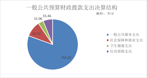 (图5:一般公共预算财政拨款支出决算变动情况)(柱状图) 2023年度一般公共预算财政拨款支出921.46万元,主要用于以下方面:一般公共服务支出742.42万元,占80.57%;社会保障和就业支出92.52万元,占10.04%;卫生健康支出31.06万元,占3.37%;住房保障支出55.46万元,占6.02%。