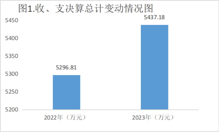 一、 收入支出决算总体情况说明 2023年度收、支总计均为5437.18万元。与2022年度相比,收、支总计各增加140.37万元,增长2.65%。收入增减变动原因:一是一般公共预算财政拨款收入比2022年增加450.56万元;二是政府性基金预算财政拨款收入比2022年减少310.19万元。支出增减变动原因:一是2023年基本支出比2022年增加56.57万元;二是2023年项目支出比2022年增加83.8万元。