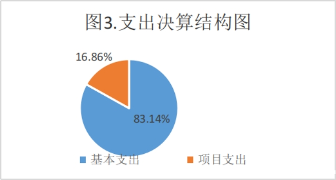 二、 收入决算情况说明 2023年度本年收入合计5437.18万元,其中:一般公共预算财政拨款收入5428.68万元,占99.84%;政府性基金预算财政拨款收入8.5万元,占0.16%。 三、 支出决算情况说明 2023年度本年支出合计5437.18万元,其中:基本支出4520.24万元,占83.14%;项目支出916.93万元,占16.86%。(因决算公开表取数单位为万元,分项数据之和四舍五入后与总数相差0.01万元)