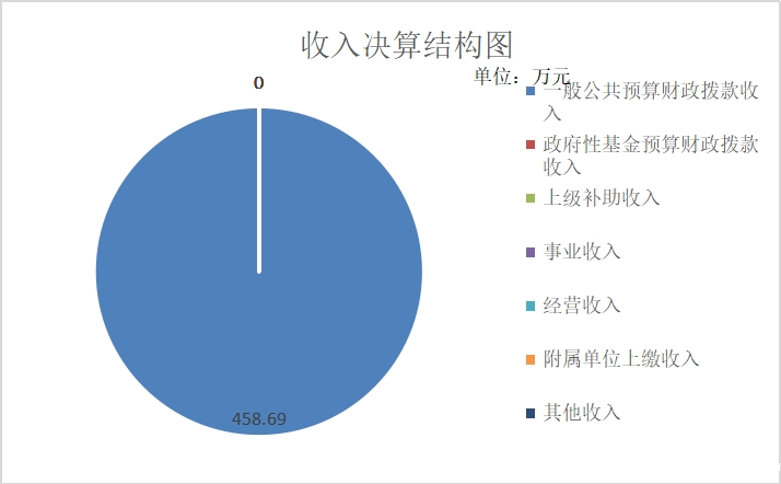 (图1:收、支决算总计变动情况图)(柱状图) 2023年度本年收入合计458.69万元,其中:一般公共预算财政拨款收入458.69万元,占100%;政府性基金预算财政拨款收入0万元,占0%;国有资本经营预算财政拨款收入0万元,占0%;上级补助收入0万元,占0%;事业收入0万元,占0%;经营收入0万元,占0%;附属单位上缴收入0万元,占0%;其他收入0万元,占0%。