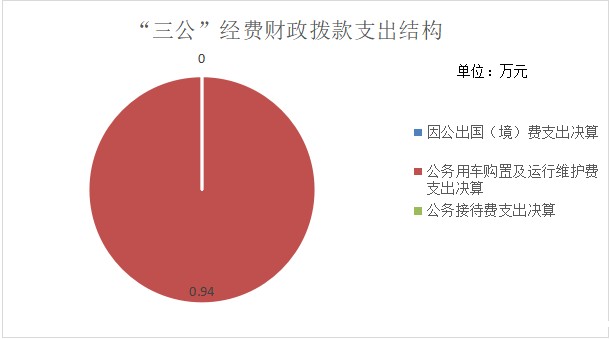 2023年度“三公”经费财政拨款支出决算中,因公出国(境)费支出决算0万元,占0%;公务用车购置及运行维护费支出决算0.94万元,占100%;公务接待费支出决算0万元,占0%。具体情况如下: