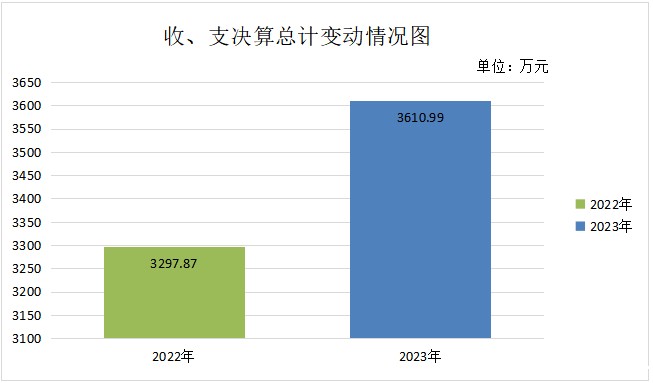 2023年度收、支总计3610.99万元。与2022年度相比,收、支总计各增加313.12万元,增长9.49%。主要变动原因是学校师生人数增加、规模扩大,学校项目建设和公用经费、人员支出增加。