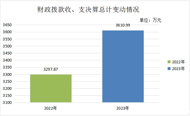 2023年度财政拨款收、支总计3610.99万元。与2022年度相比,财政拨款收、支总计各增加313.12万元,增长9.49%。主要变动原因是学校师生人数增加、规模扩大,学校项目建设和公用经费、人员支出增加。